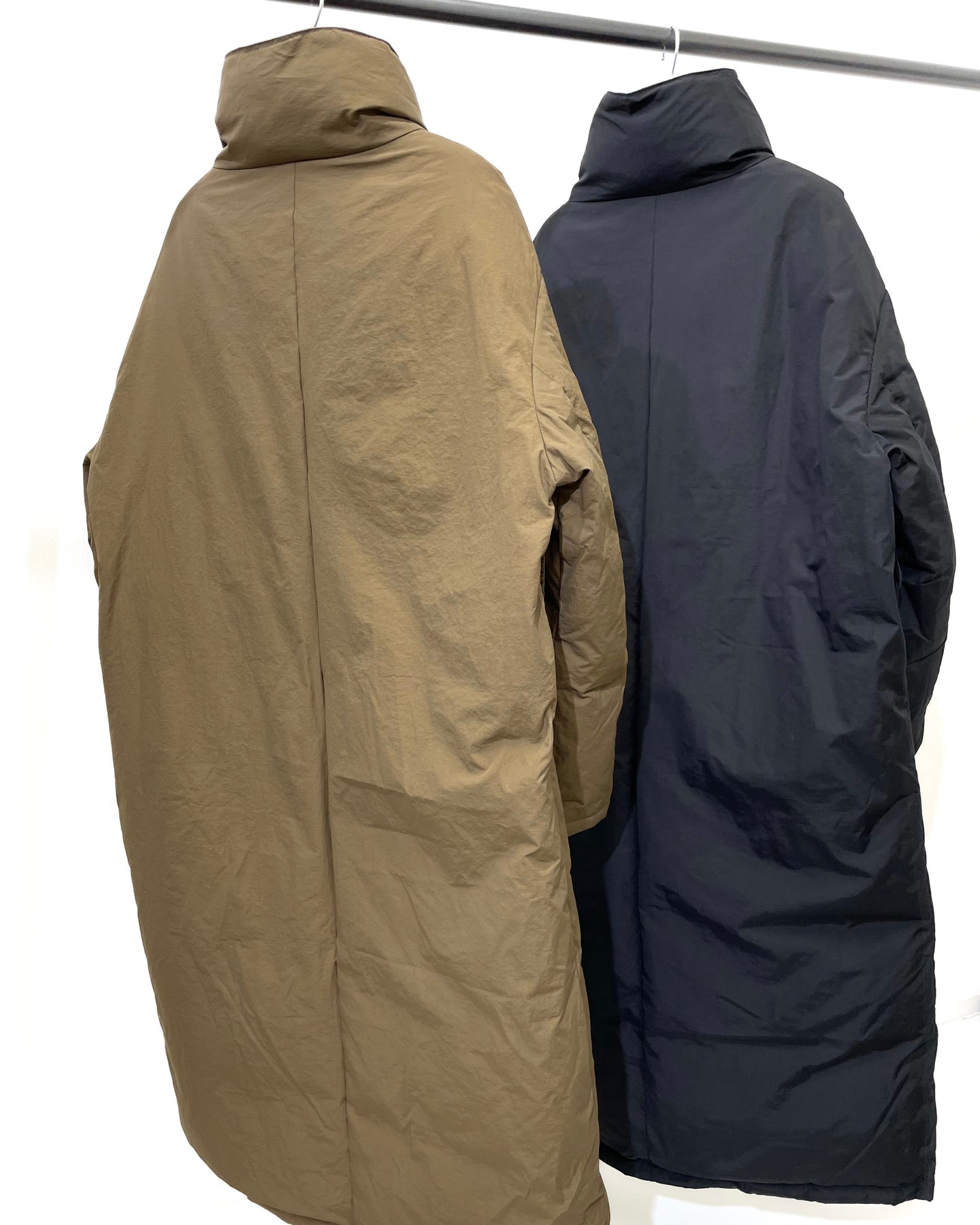 切り替えを抑えたミニマルな佇まいと、ロング丈でも着膨れせず重たく見せない美しいシルエット。